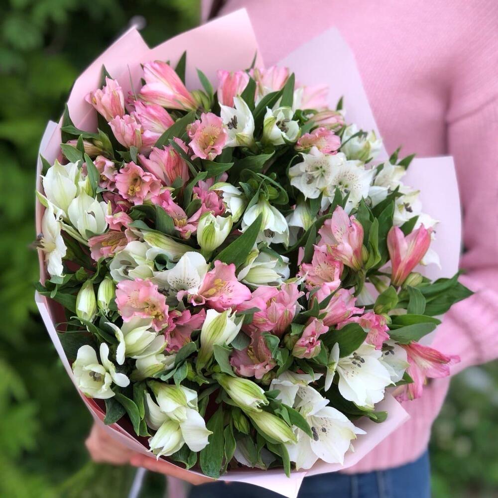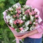 Букет из альстромерии и гипсофилы