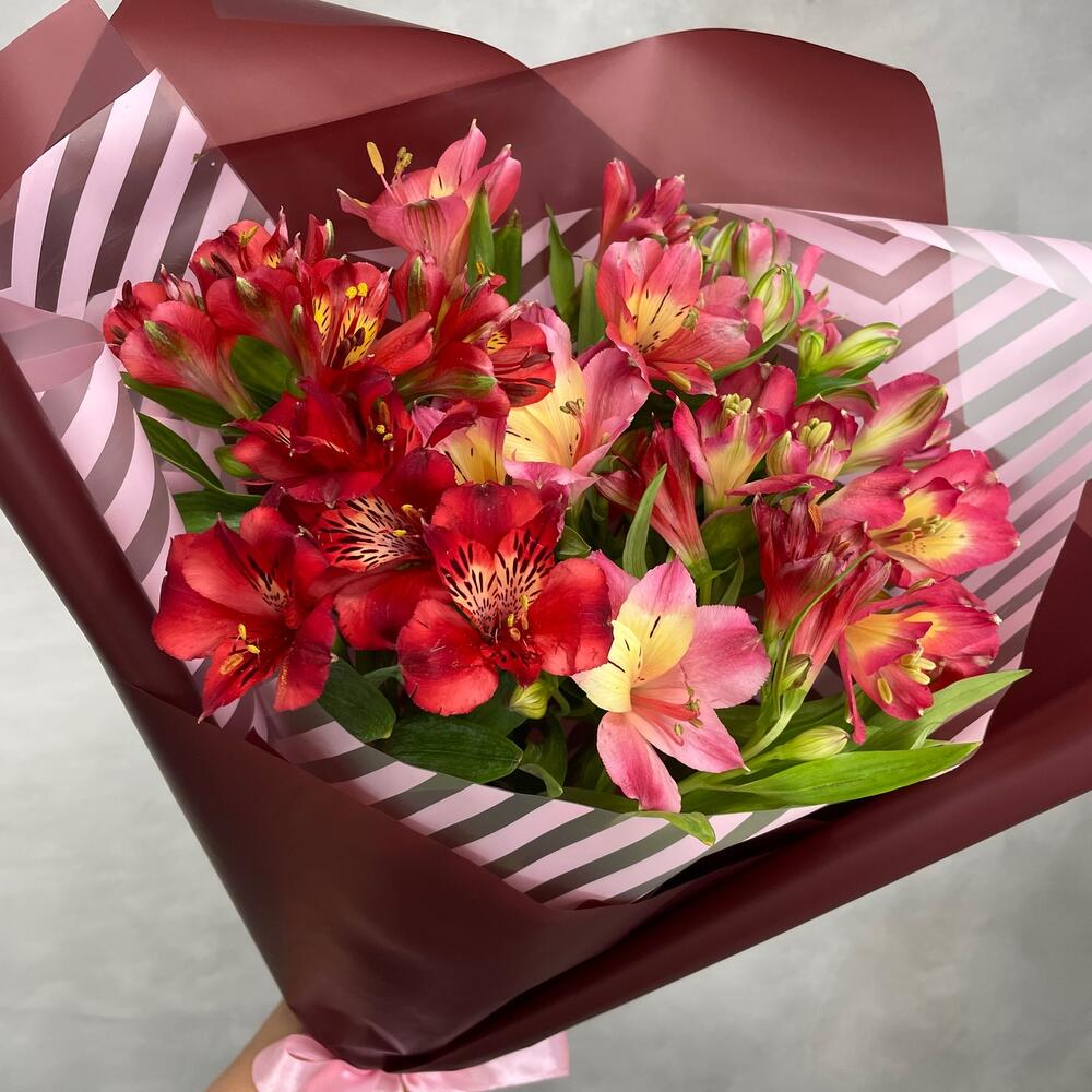 Альстромерия – 7 шт.Лента атласная – 1 шт.Упаковка дизайнерская – 1 шт.
