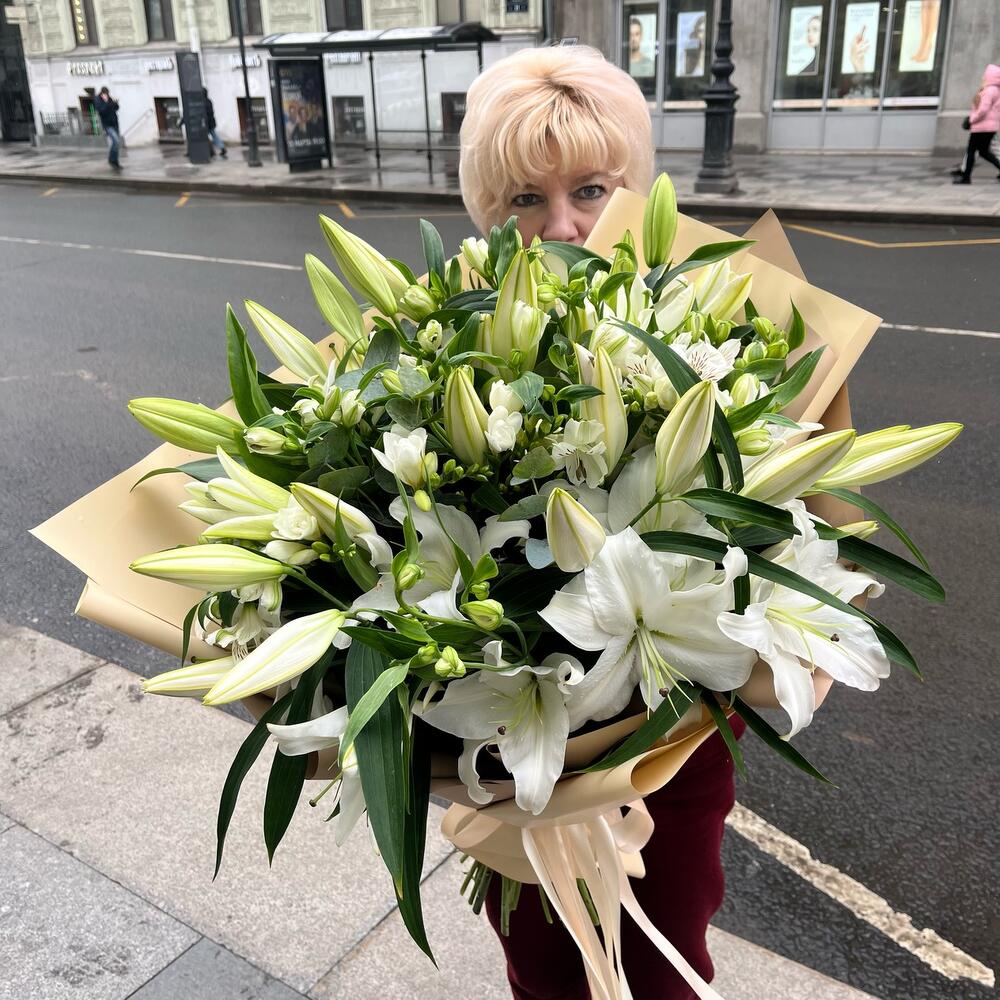 ЮЛИЯ огромный премиальный авторский букет из лилий, фрезий и альстромерии