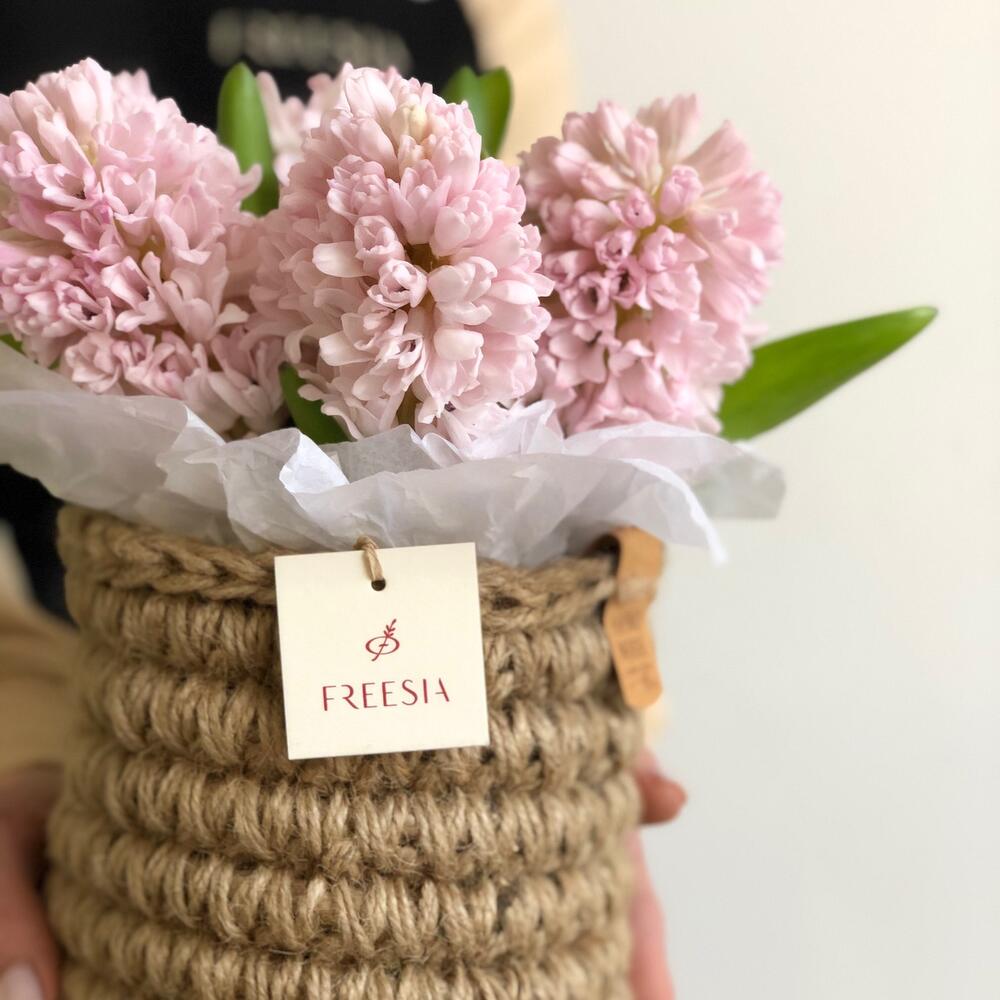 Гиацинт розовый – 7 шт.кашпо плетеное ручной работы – 1 шт.упаковка транспортировочная – 1 шт.