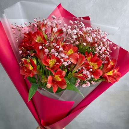 Альстромерия – 11 шт.Гипсофила – 3 шт.Упаковка – 1 шт.