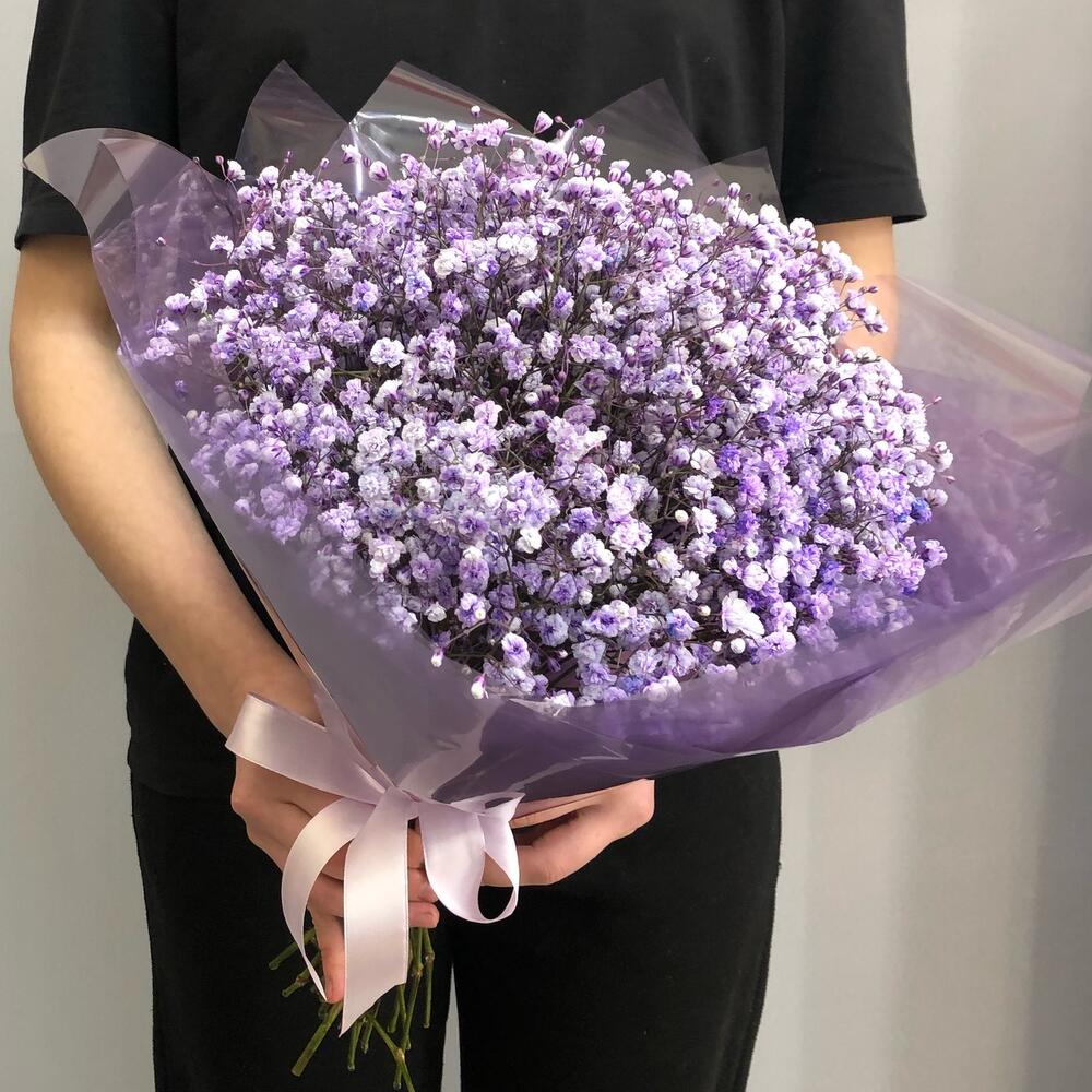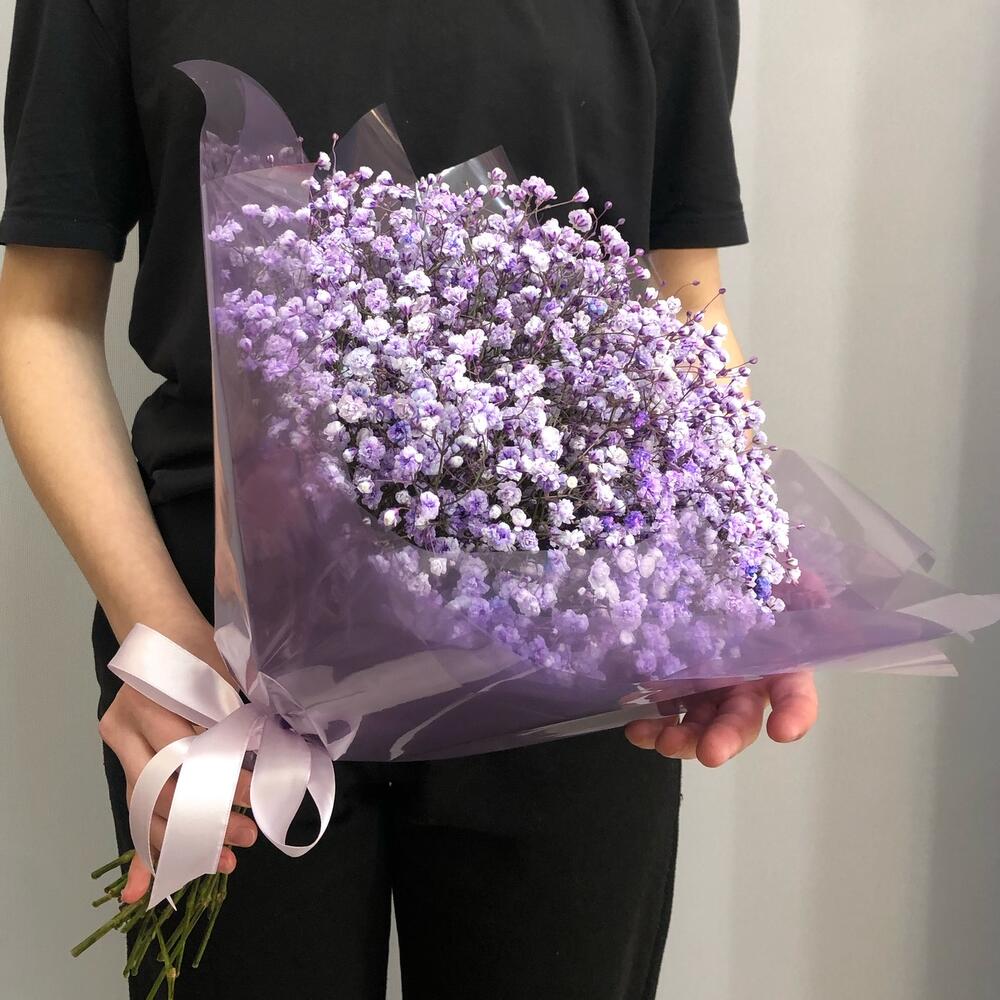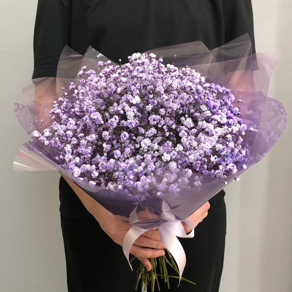 Гипсофила – 9 шт.Упаковка дизайнерская – 1 шт.Лента атласная – 1 шт.