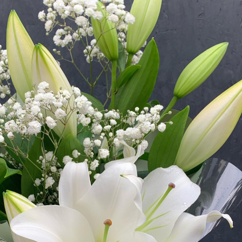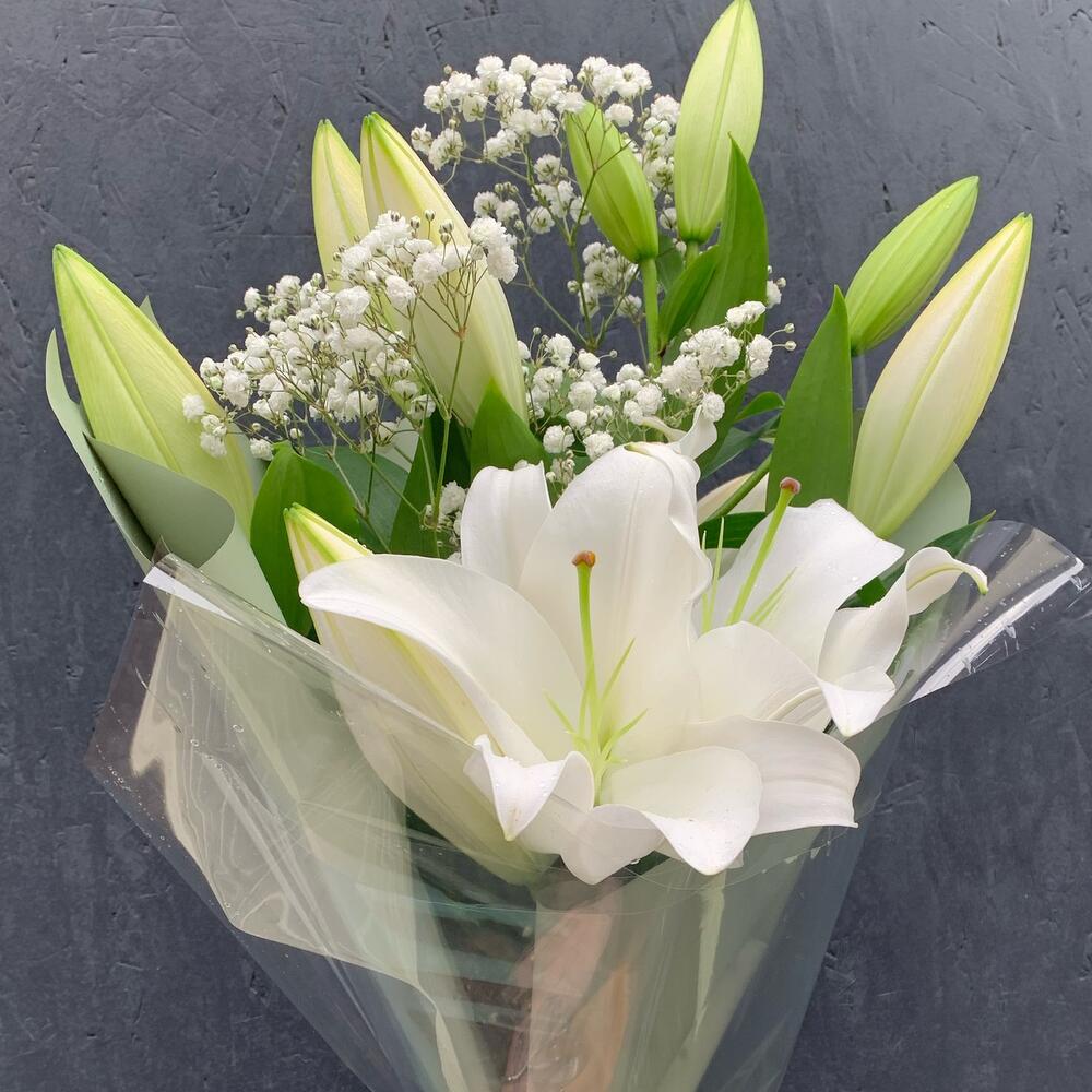 Лилия – 3 шт.Гипсофила – 1 шт.Упаковка дизайнерская – 2 шт.