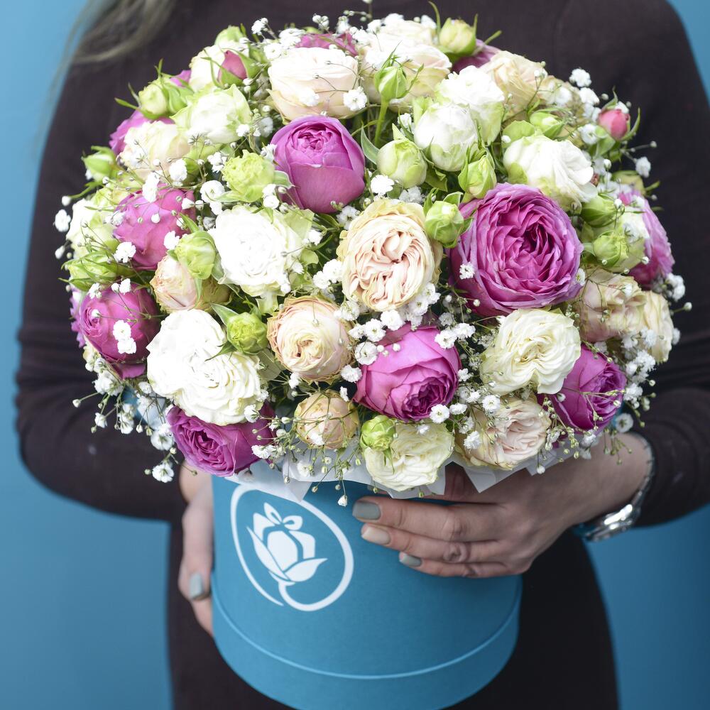 Букет Лилас из кустовых пионовидных роз и диантуса