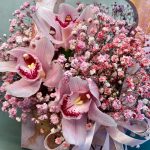 Гипсофила и орхидеи Ванда в коробке M