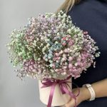 “Сиреневый туман” – композиция из гипсофилы в шляпной коробке