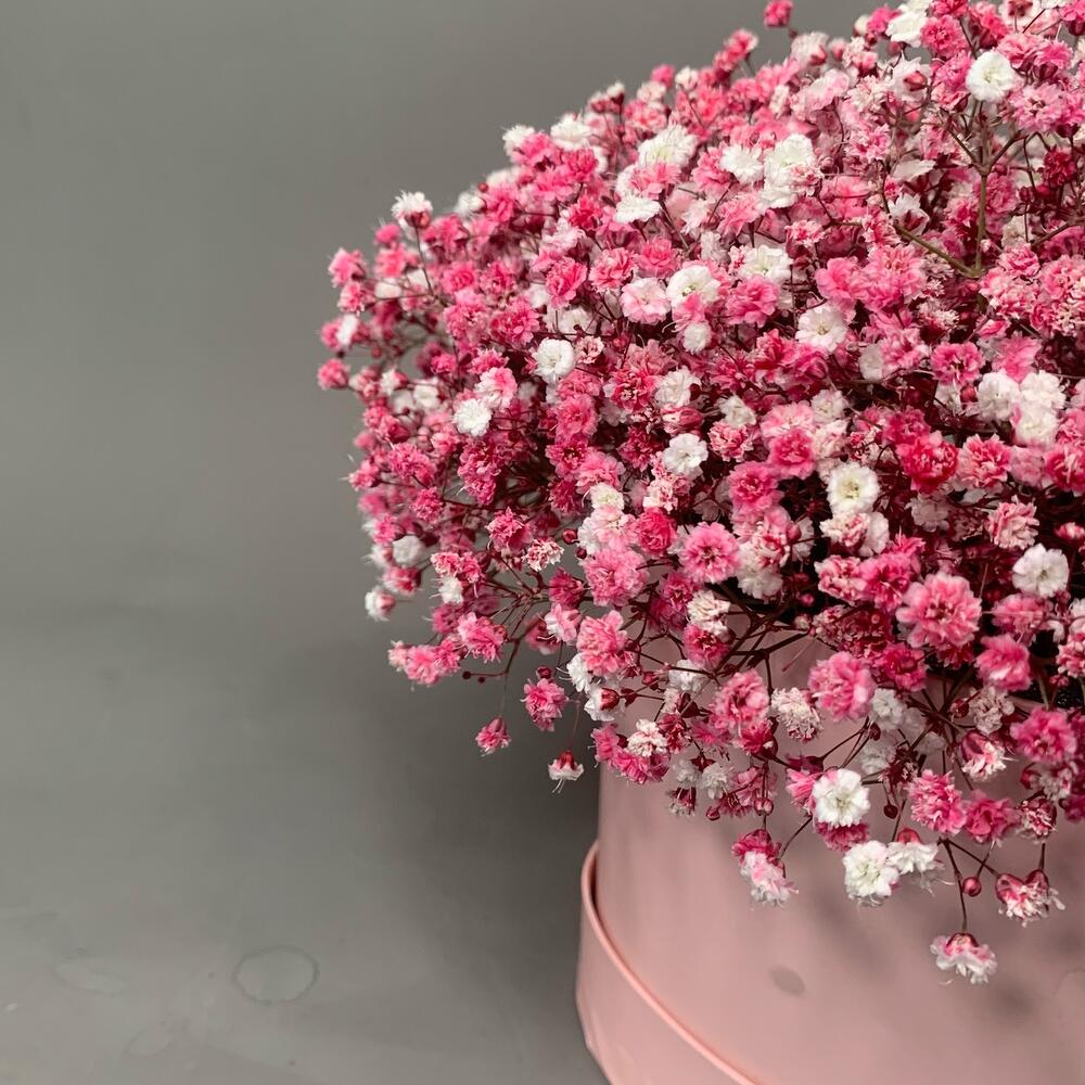 Гипсофила – 7 шт.Коробка сердце – 1 шт.