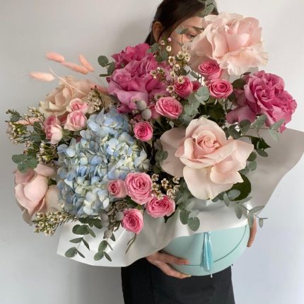 Букетик в шляпной коробочке, который будет долго радовать получательницу своей красотой. Отличный подарок на День рожденья, без повода, для украшения дома или офиса.