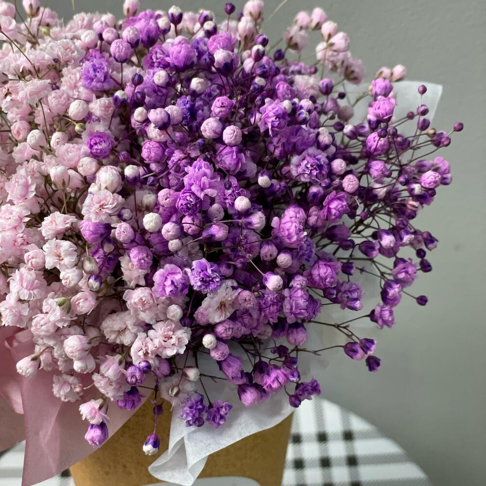 Гипсофила – 3 шт.стакан кофейный – 1 шт.Оазис флористический – 1 шт.Тишью – 2 шт.Лента брендированная – 1 шт.