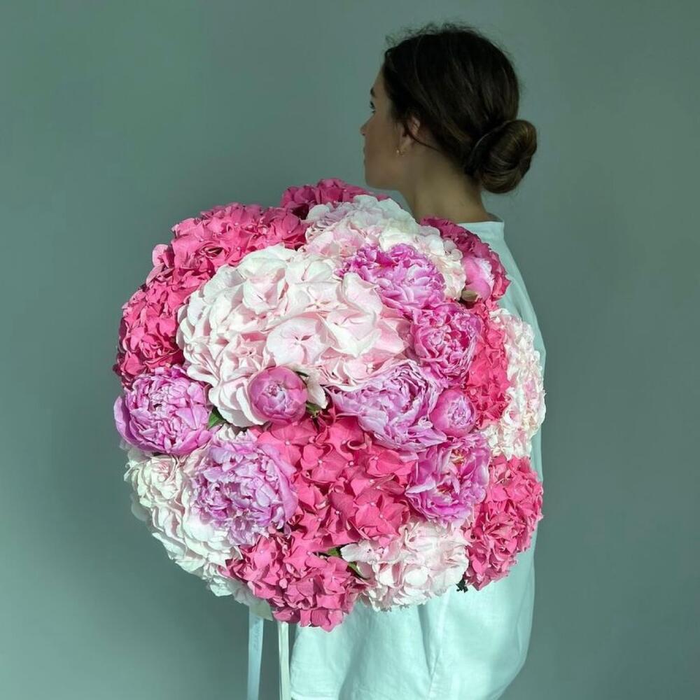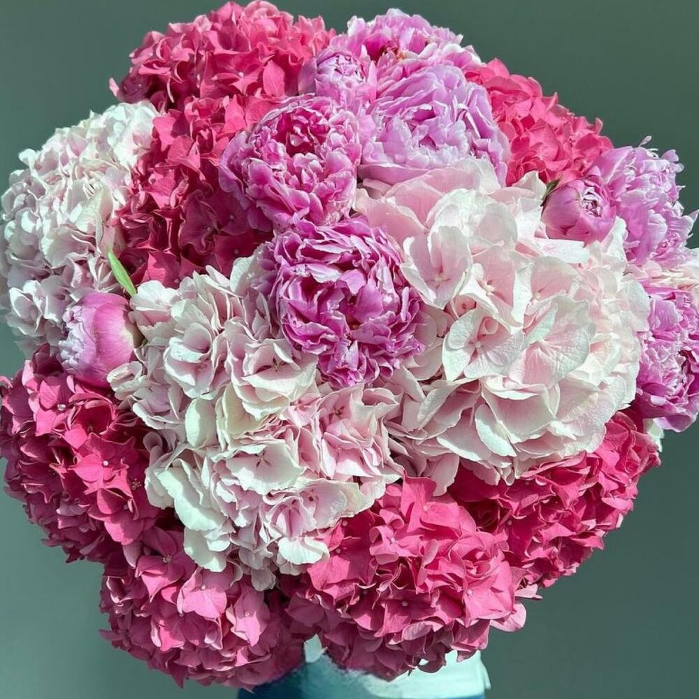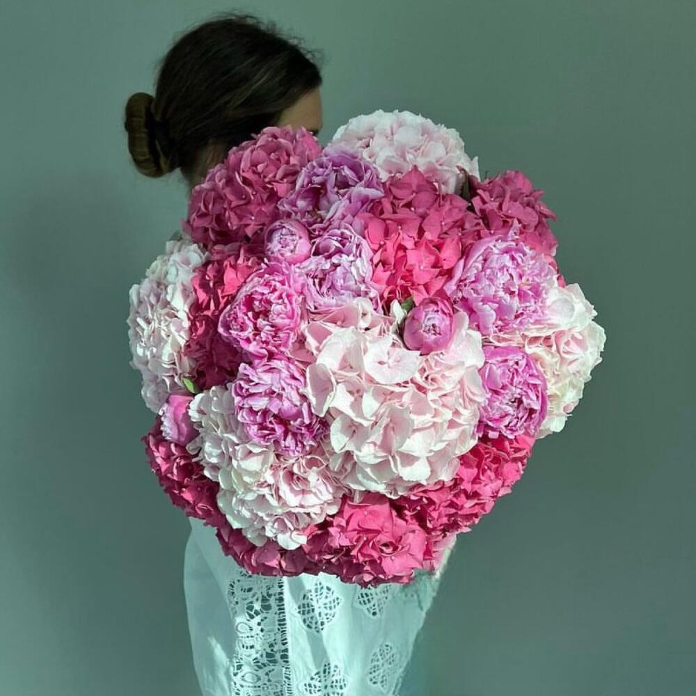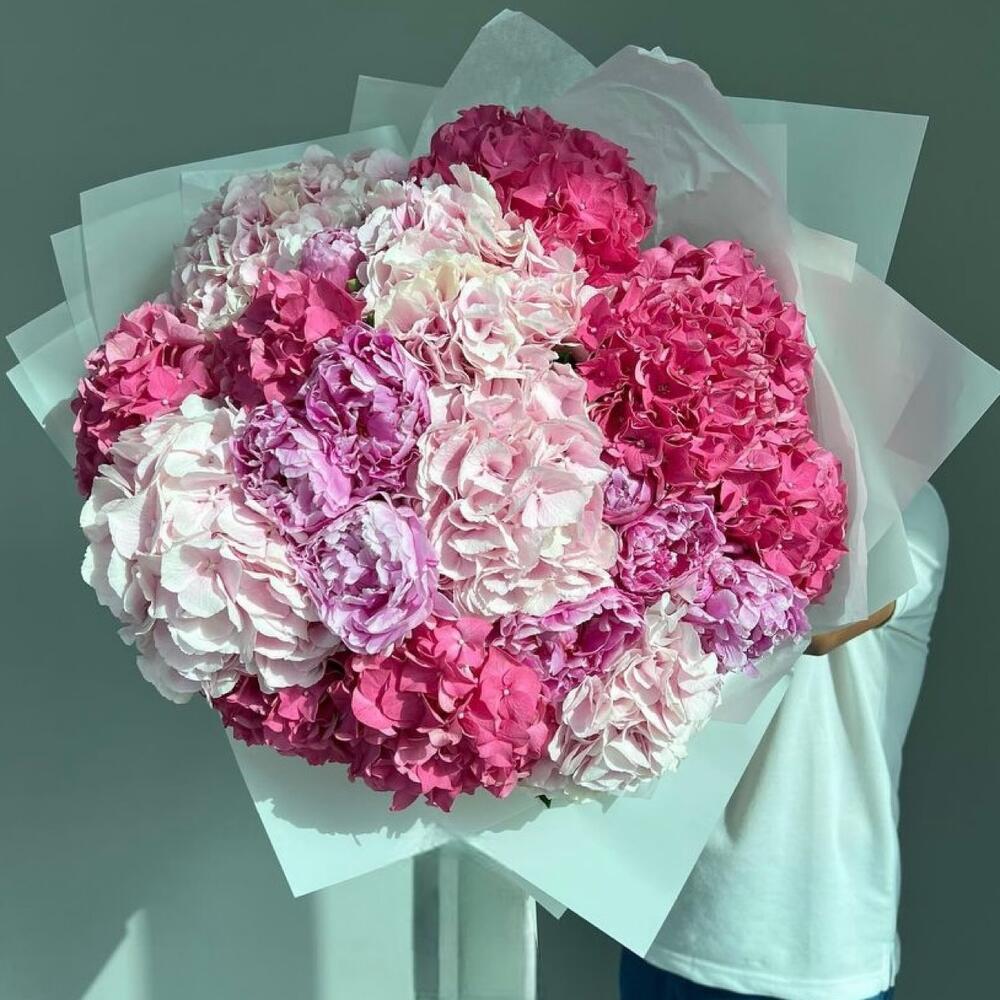 Букет из пионов и ассорти гортензий