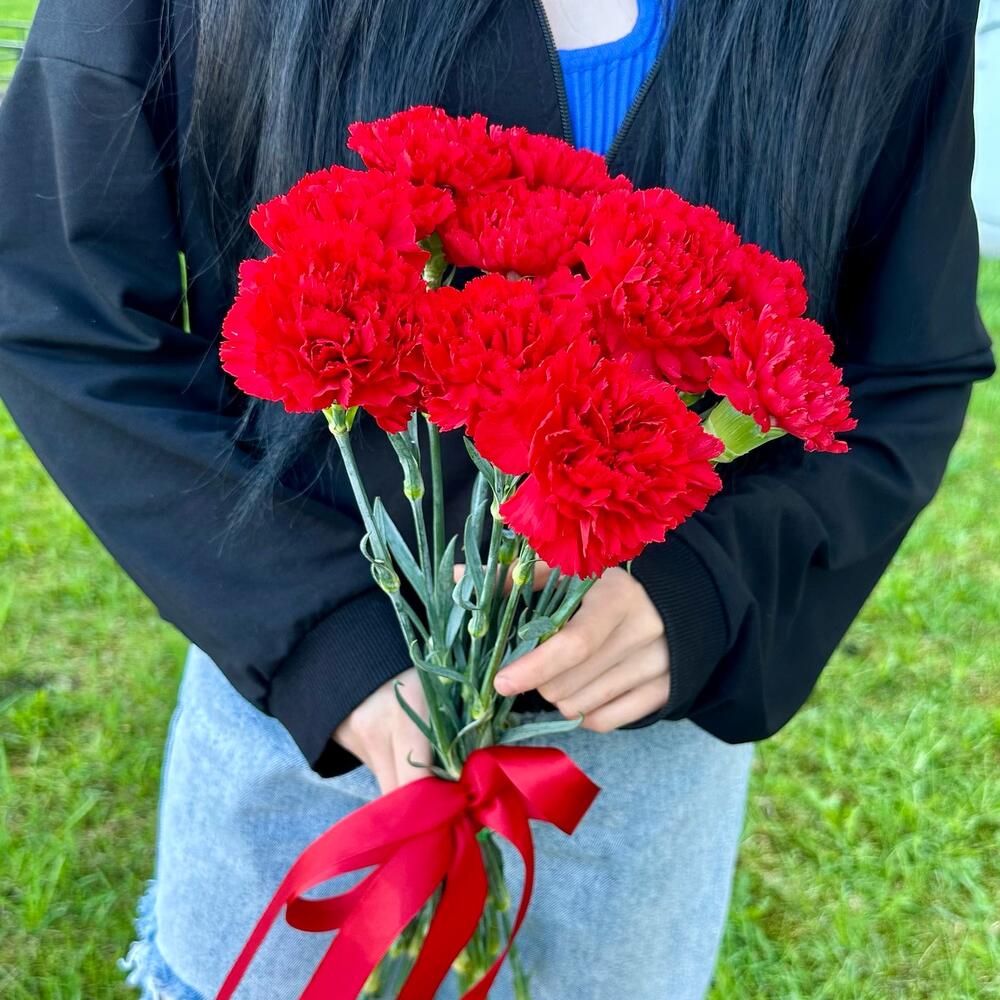 Лента атласная – 1 шт.Гвоздика красная – 11 шт.Открыточка с вашими пожеланиями – 1 шт.