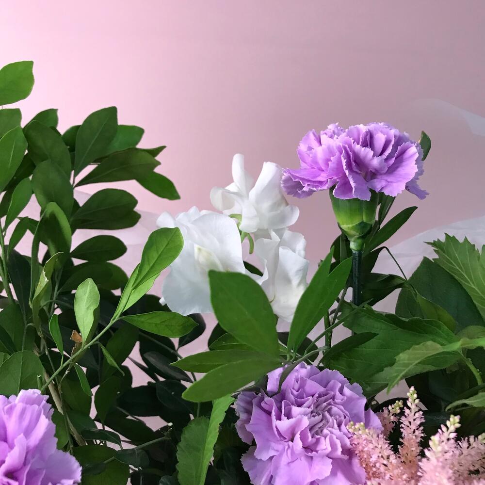 «Лавандовое созвездие» Букет из розы, гвоздики, статица и хлопка