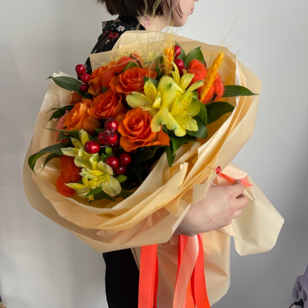 Рыжий букет с розами