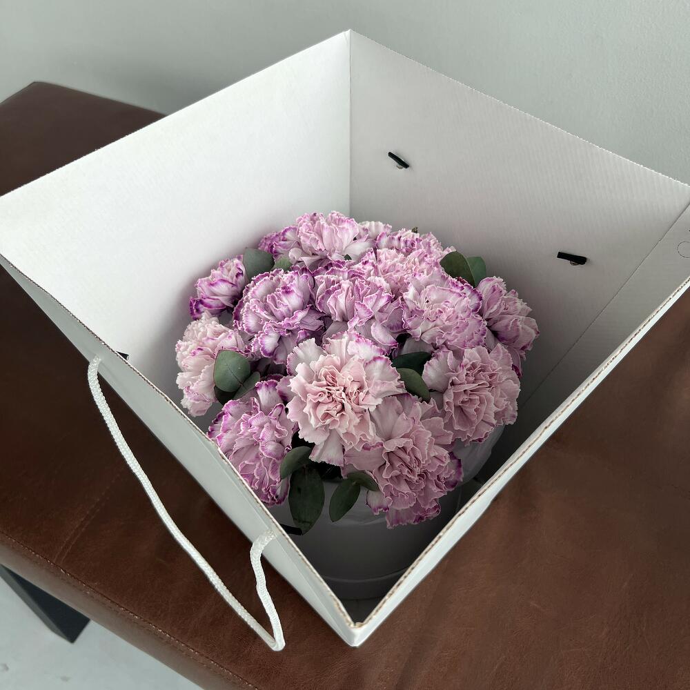 Шляпная коробка фиолетовых гвоздик (N 131)