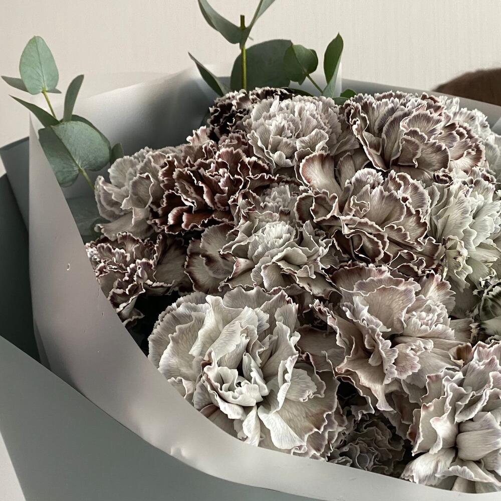 Букет для тех кто ценит стиль и минимализм Букет из 19 серых диантусов в упаковке с пышными лентами К заказу мы добавляем инструкцию по уходу за цветами и средство для продления жизни цветов в подарок Вы можете дополнить заказ воздушными шарами или коробкой сюрпризом … Показать ещё , ознакомьтесь со всем ассортиментом нашего магазина.