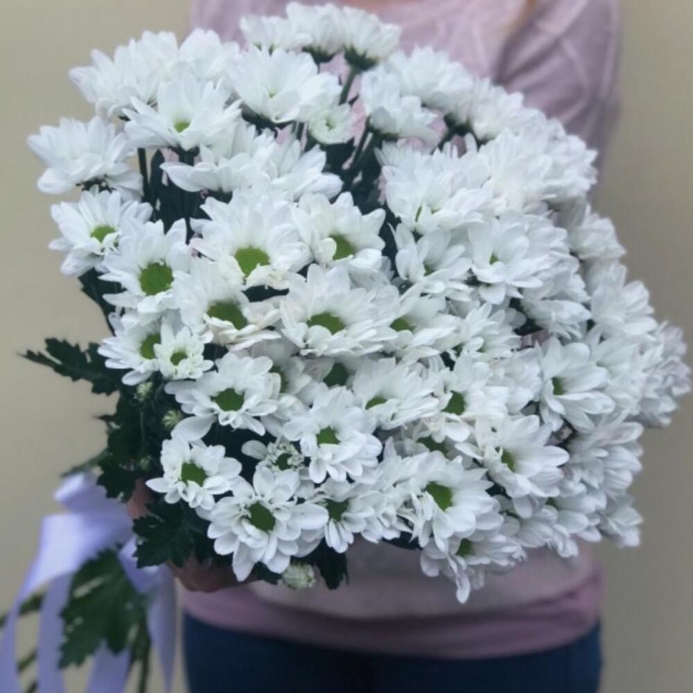 Хризантема кустовая – 15 шт.Лента атласная – 1 шт.