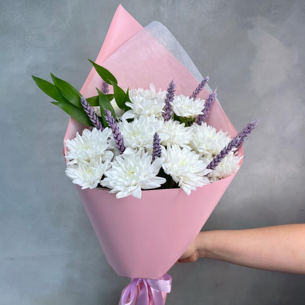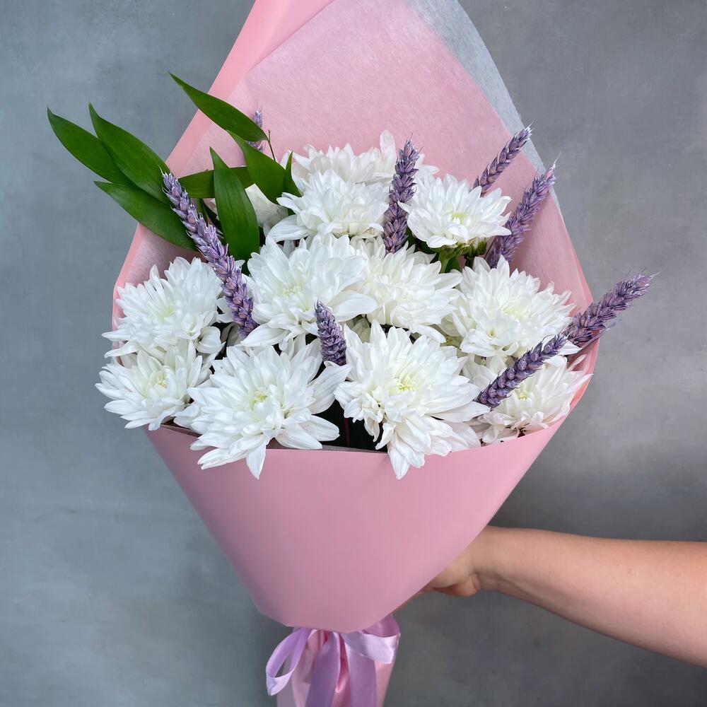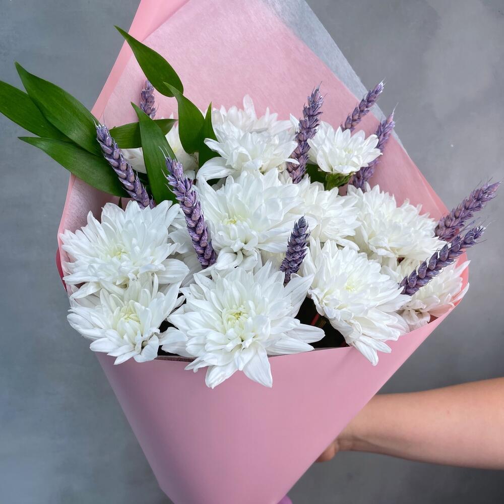 Хризантема кустовая – 3 шт.Тритикум(пшеница) – 9 шт.Фисташка – 1 шт.Упаковка – 1 шт.
