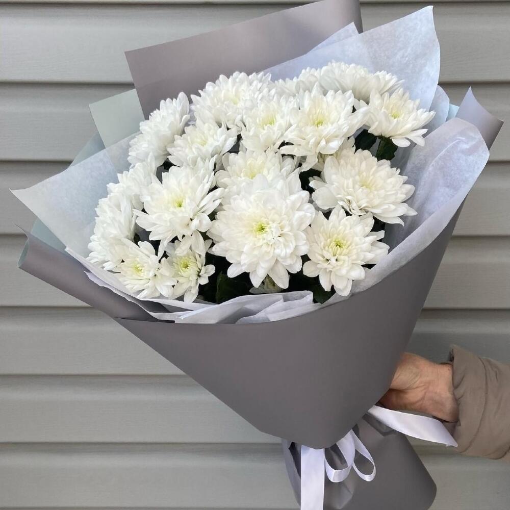 ≈ 101 белая ромашка - 11 веток хризантем с оформлением