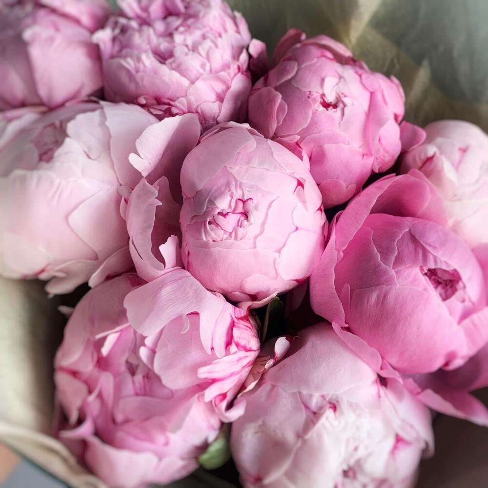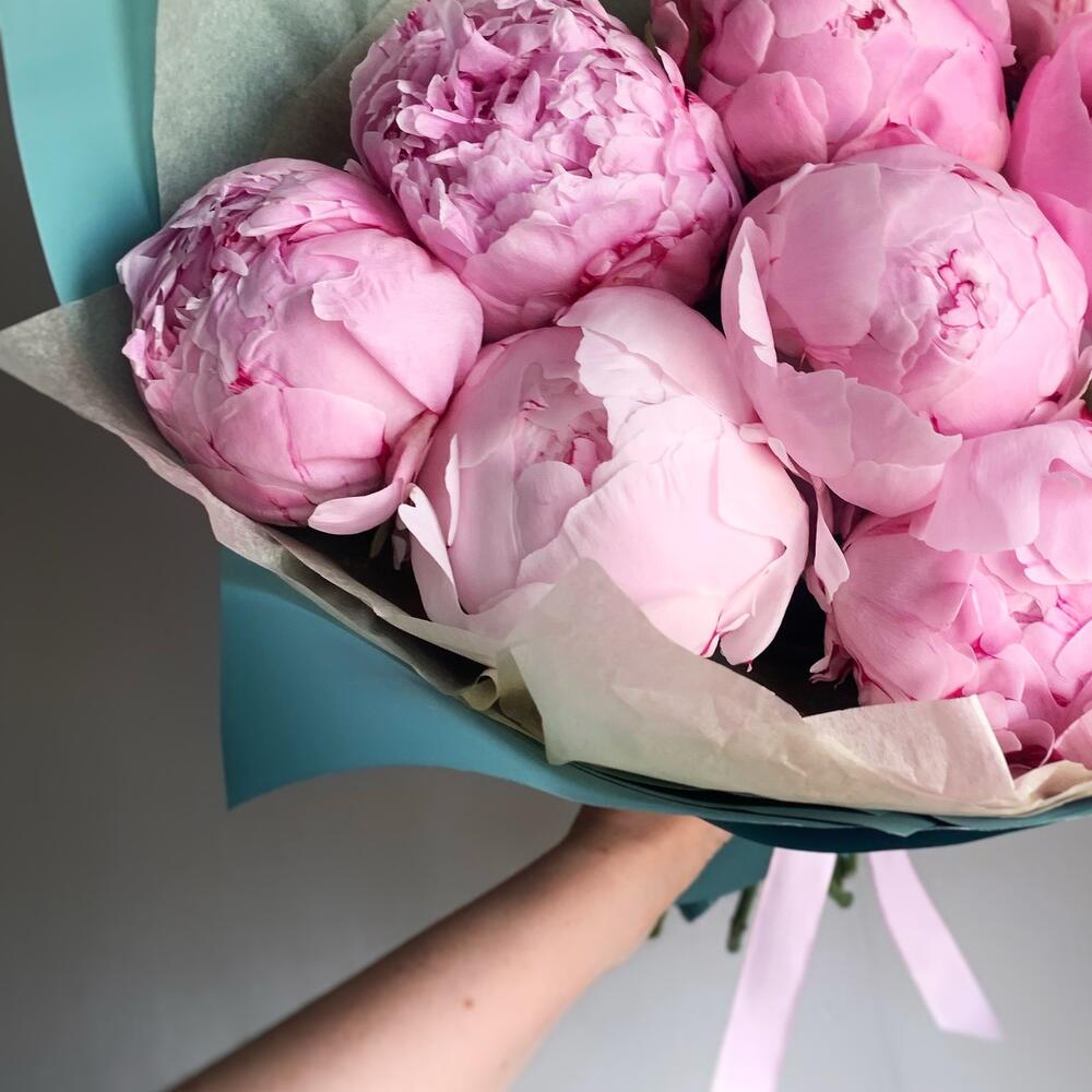 Букет живых цветов из 11 розовых пионов, сорт Сара Бернар/Подарок на День рождения, маме, дочке, девочке