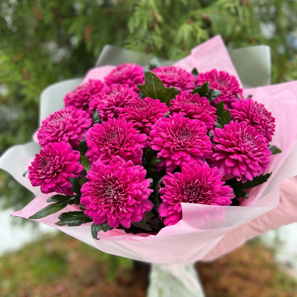 Букет из яркой Хризантемы 15 Шт (моно 003)