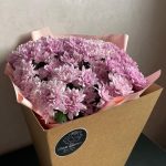 Кустовая хризантема – 13 шт.Дизайнерская упаковка – 1 шт.Атласная лента – 1 шт.открытка с правилами ухода за свежими цветами – 1 шт.Транспортировочная коробка – 1 шт.