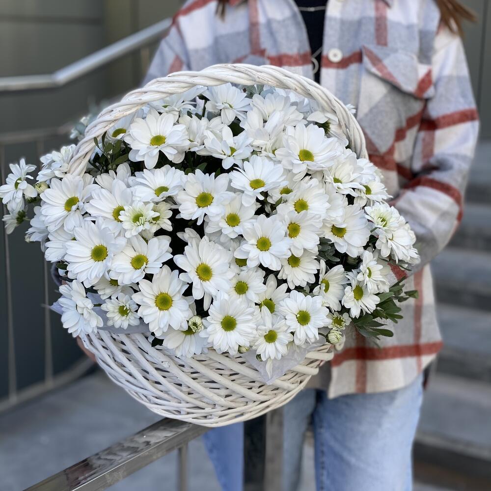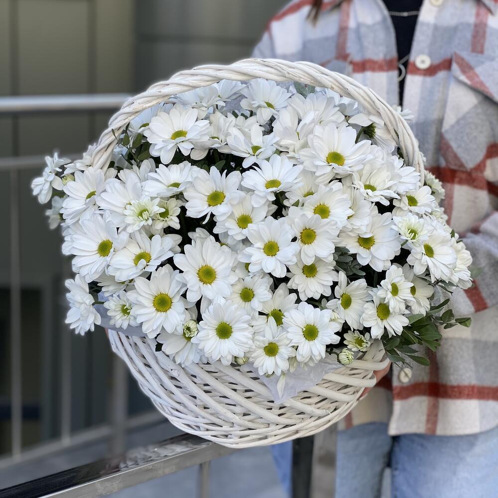 Корзина из белой ромашковой хризантемы