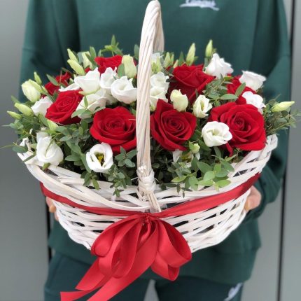 Корзина из красных роз и эустомы Вселенная