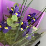 Ирис – 5 шт.Эвкалипт – 1 шт.Лента атласная – 1 шт.Упаковка дизайнерская – 2 шт.