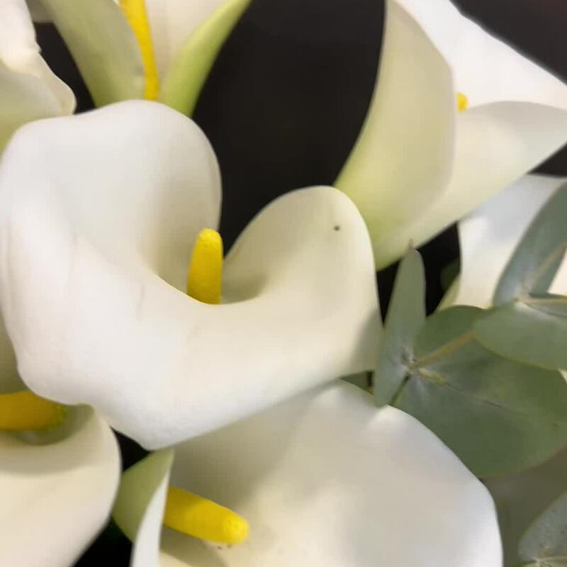 Калла – 7 шт.Лента – 1 шт.Эвкалипт – 1 шт.Упаковка дизайнерская – 2 шт.
