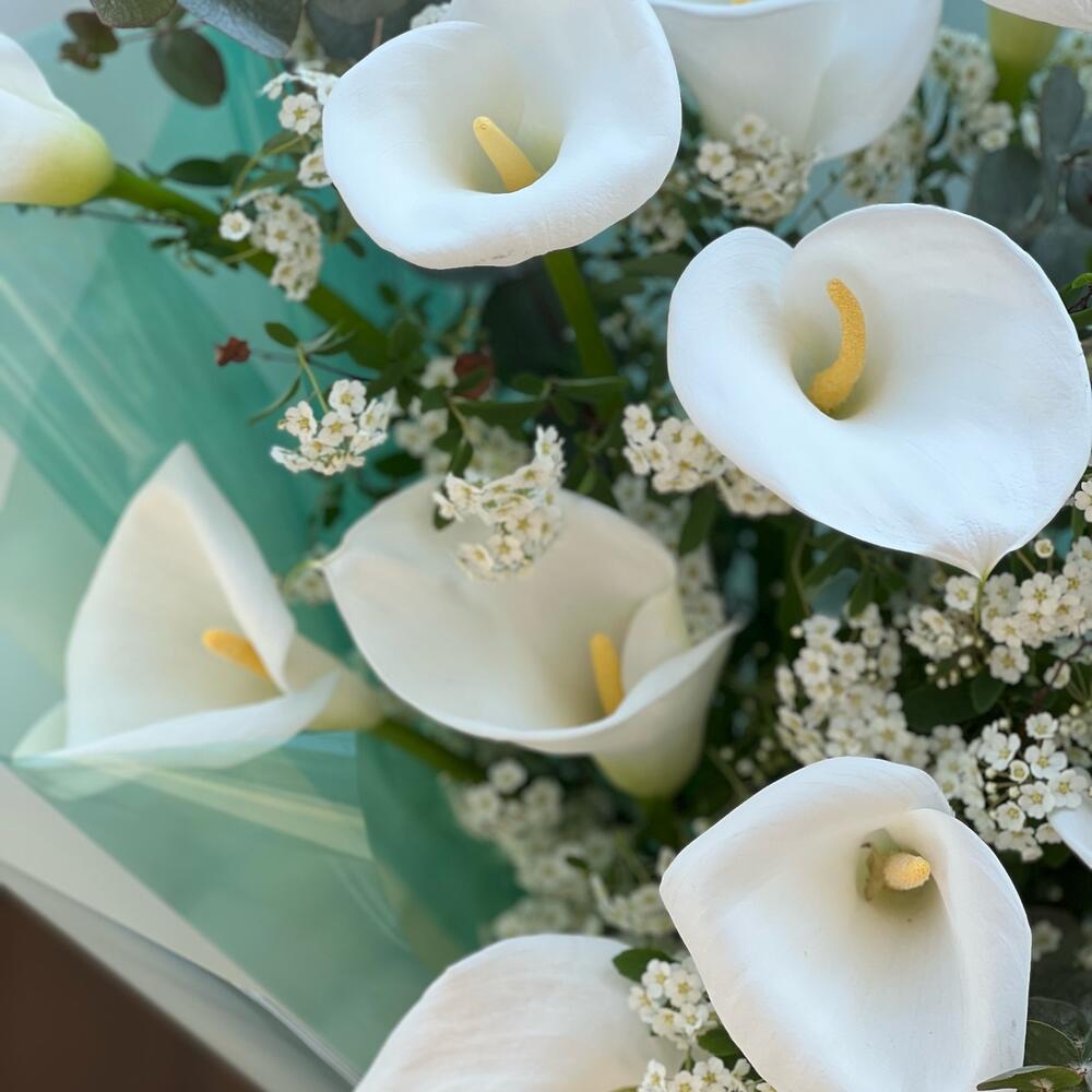 Что может быть прекрасней белоснежных калл? Только букет из калл от наших топ-флористов с добавлением необычного хамелациума и зелени в шикарном оформлении. Порадуйте своих близких чем то необычным