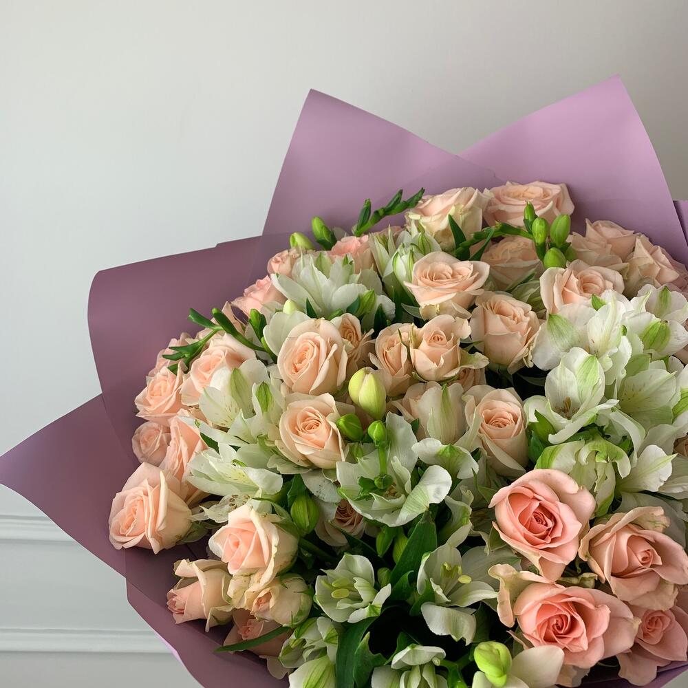 Букет «Фантазия» с кустовыми розами и альстромериями
