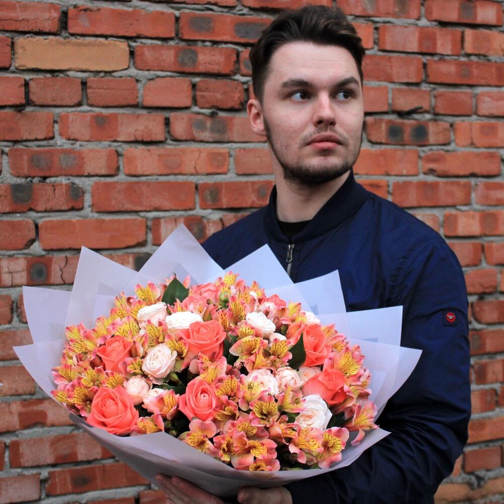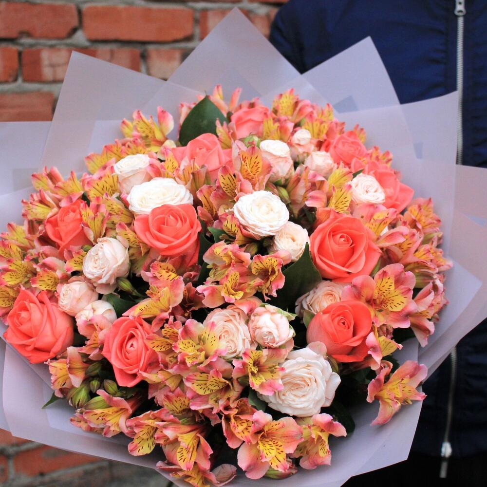 Букет микс из альстромерии и роз