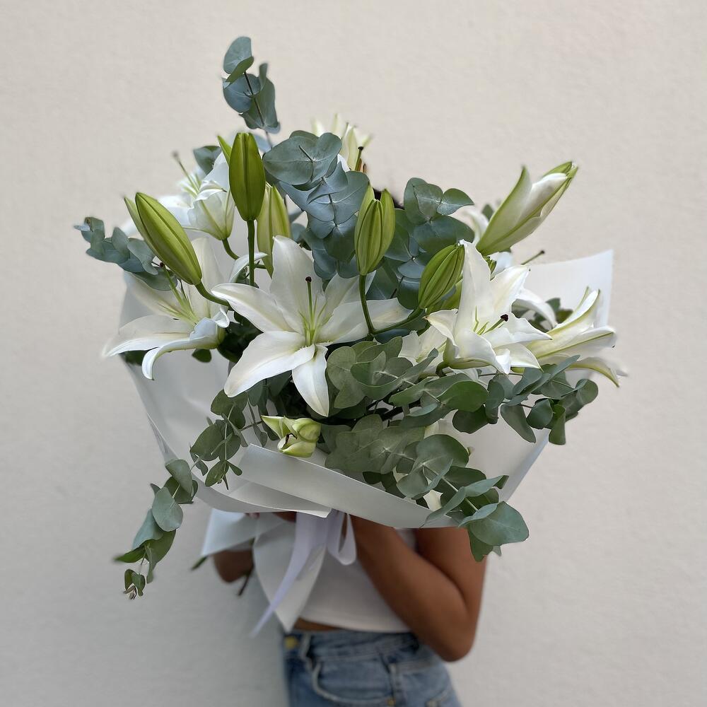 Лилия – 5 шт. Эвкалипт – 3 шт.
