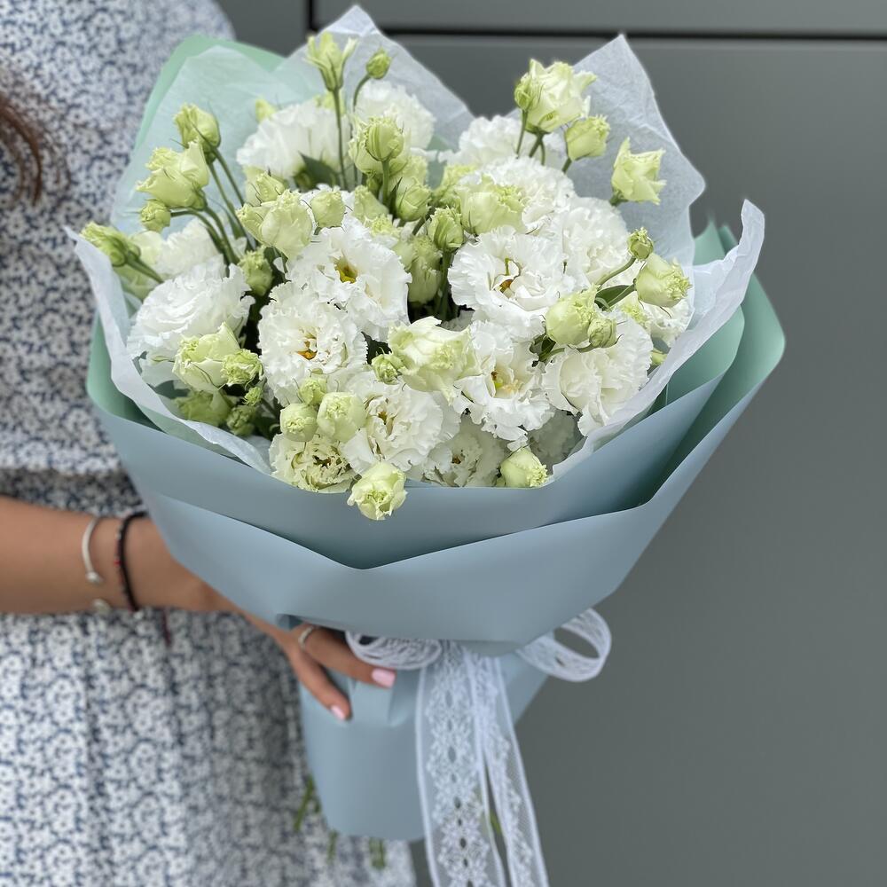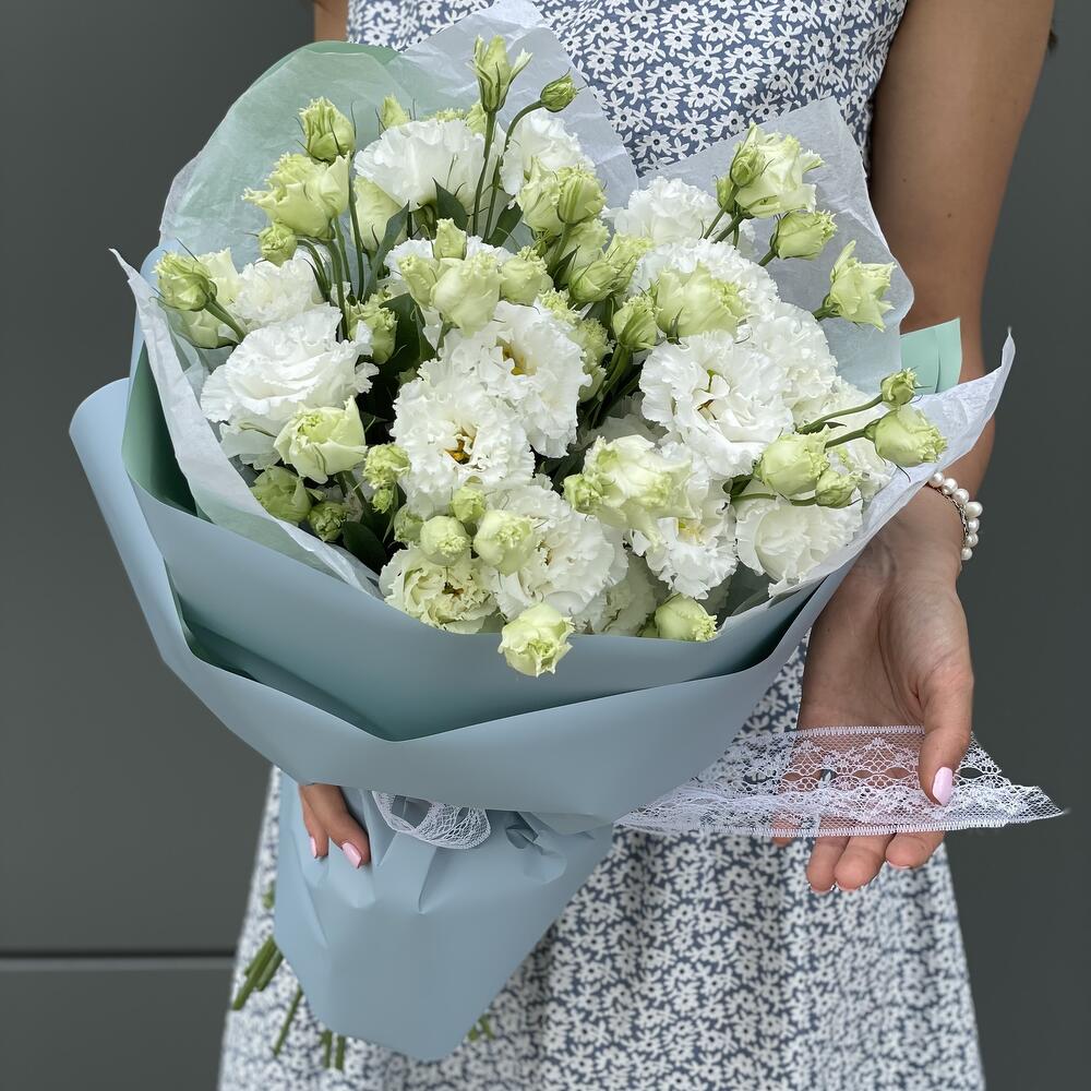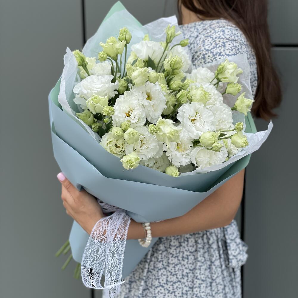 Букет из кружевной белоснежной эустомы в офрмлении!
