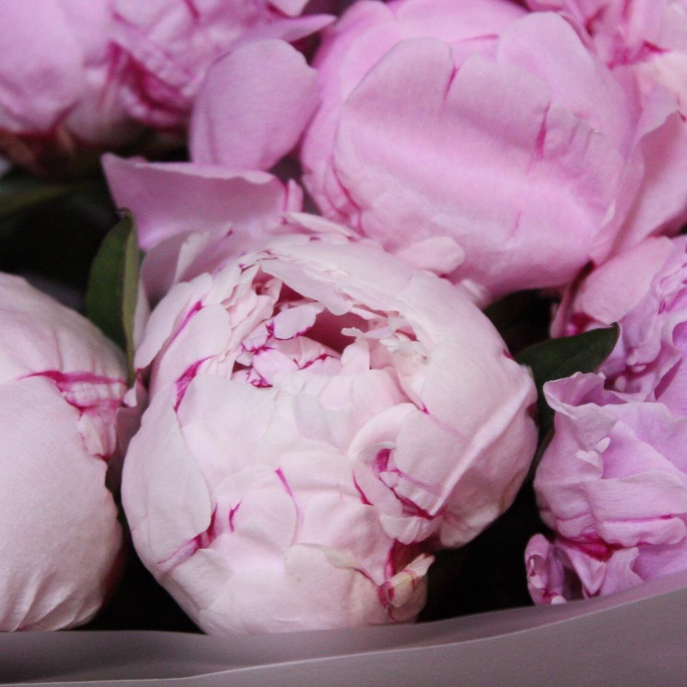 Лента атласная – 1 шт.Пион Сара Бернар – 9 шт.Пленка дизайнерская – 3 шт.