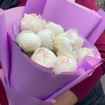 Пион белый – 9 шт.Упаковка дизайнерская – 1 шт.Лента атласная – 1 шт.