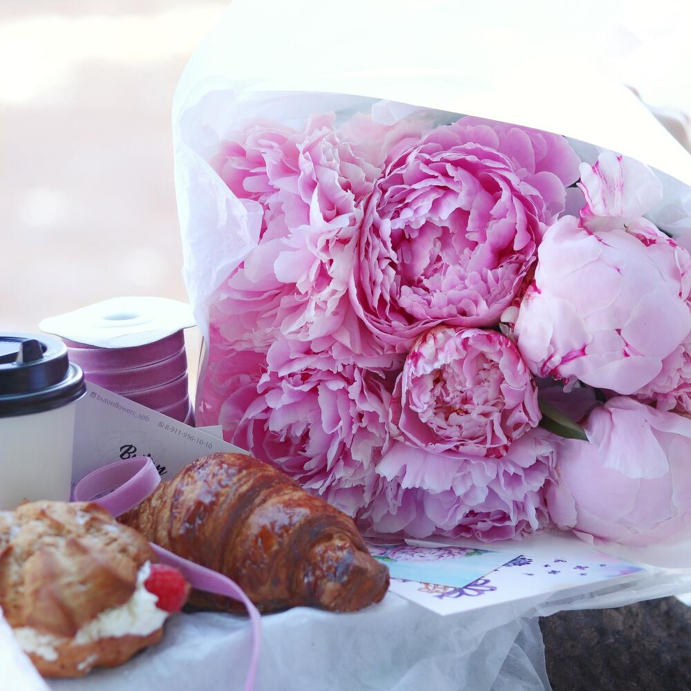 Розовый пион – 9 шт.Дизайнерская упаковка – 1 шт.Открыточка с вашими пожеланиями – 1 шт.Шоколадка – 1 шт.Транспортировочная коробка – 1 шт.инструкция по уходу за цветами – 1 шт.