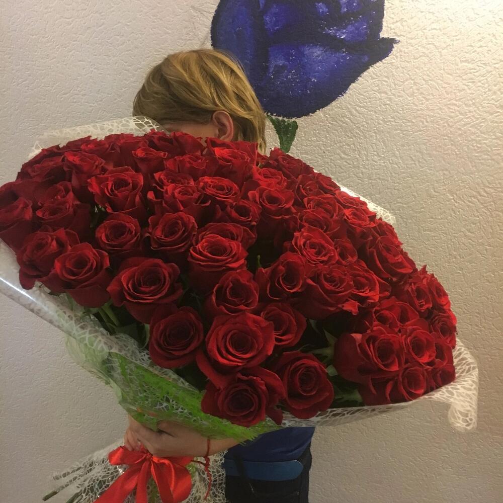 розы эквадор 70 см – 101 шт.Лента атласная – 1 шт.Пленка – 2 шт.