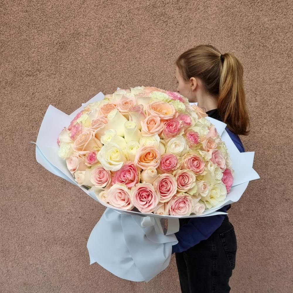 роза микс нежных оттенков 50 см – 101 шт.