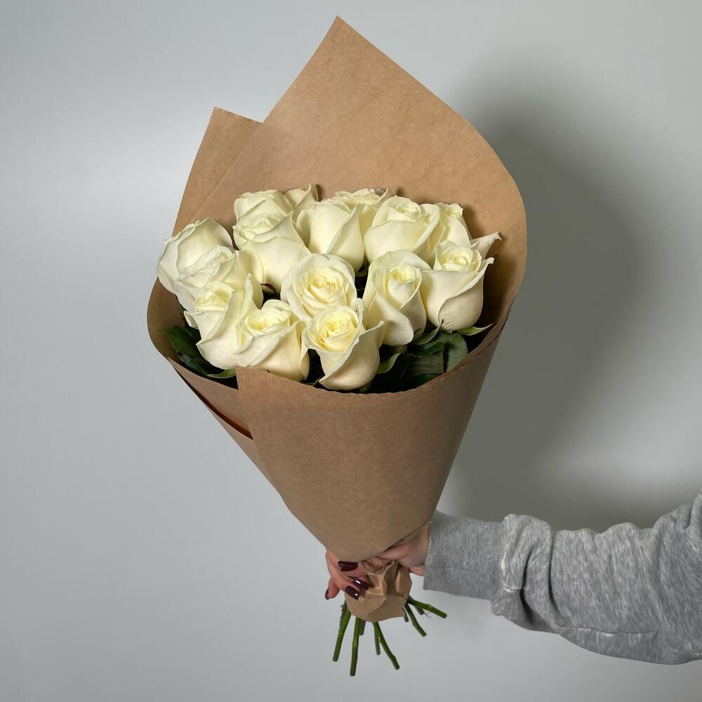 15 белых роз в крафте