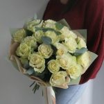 25 белых роз с шикарным эвкалиптом