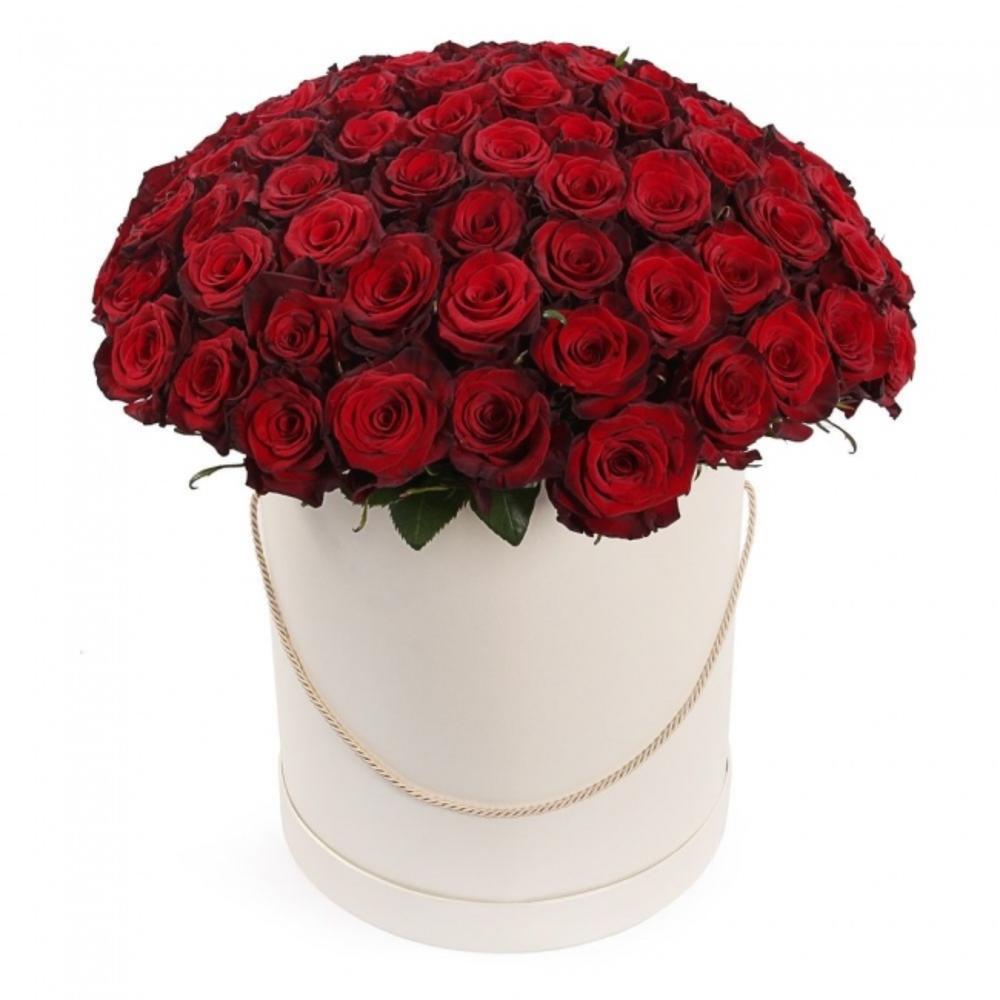 Роза Россия – 35 шт.Шляпная коробка – 1 шт.Оазис флористический – 2 шт.