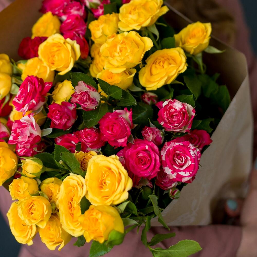 9 кустовых роз микс в крафте