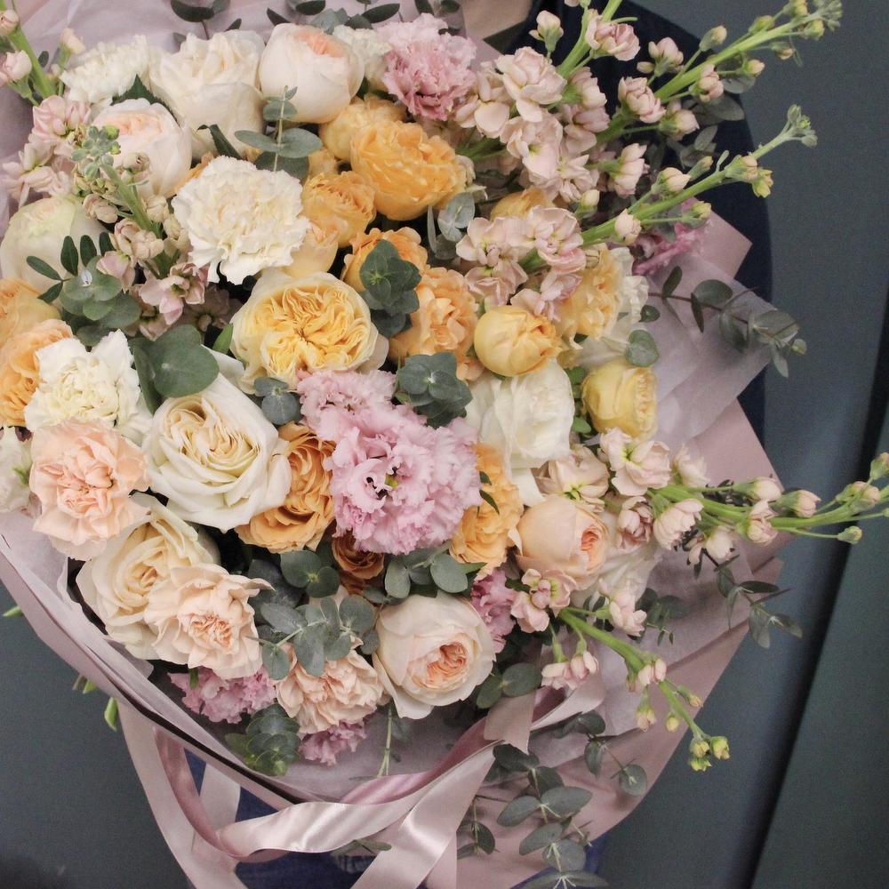 Категорий: Гвоздики, Кустовые розы, Лизиантусы, Пионовидные розы, Розы