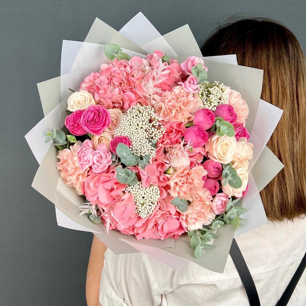 Категорий: Гвоздики, Гортензии, Кустовые розы, Пионовидные розы, Розы