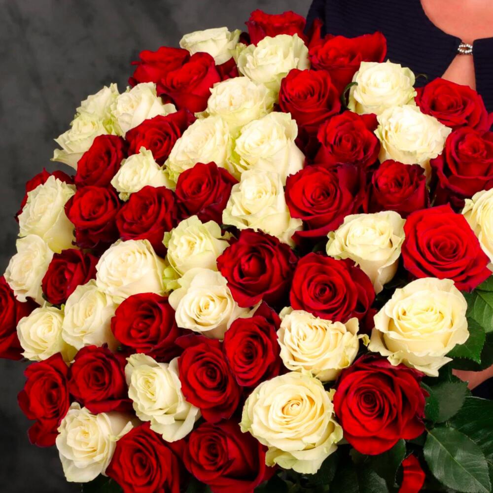 Букет 55 красных и белых роз
