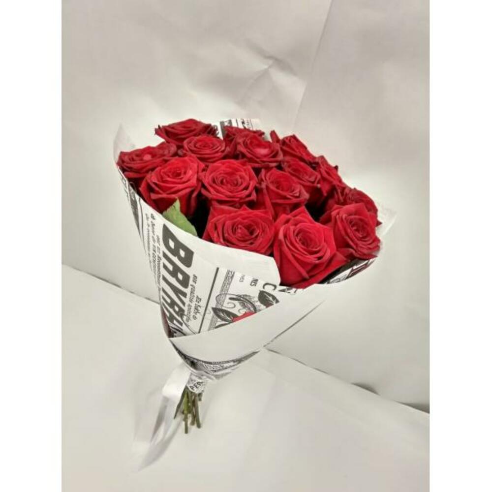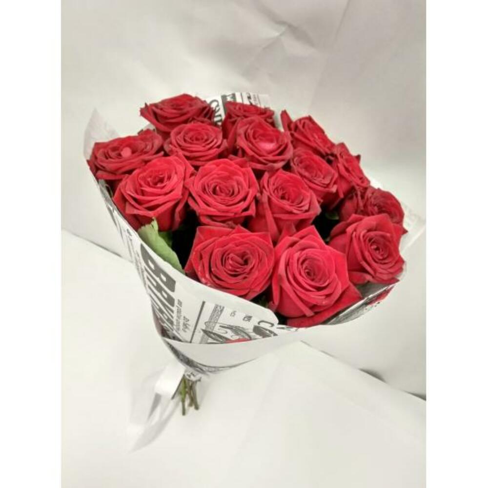 Букет из 15 красных роз Ред Наоми длиной 60 см в упаковке крафт