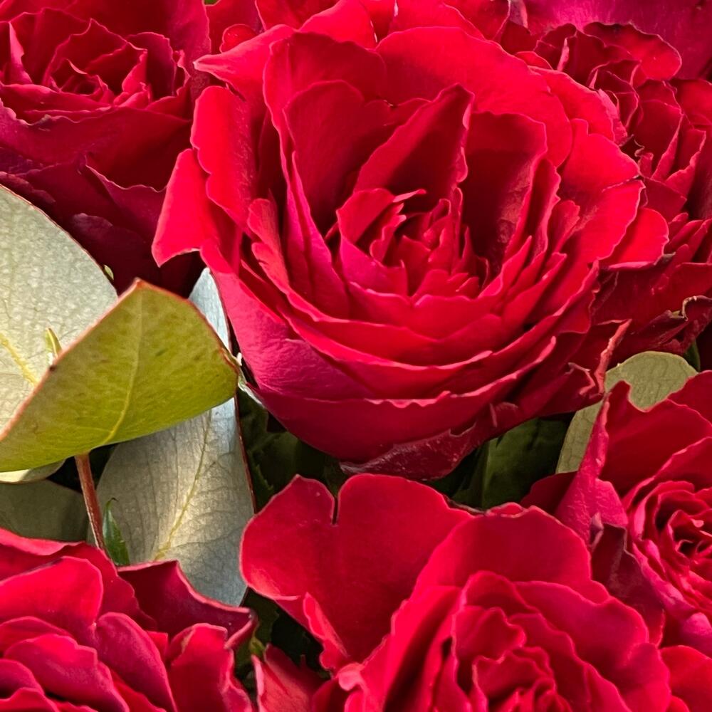 Эвкалипт – 3 шт.Роза – 51 шт.Упаковка дизайнерская – 1 шт.