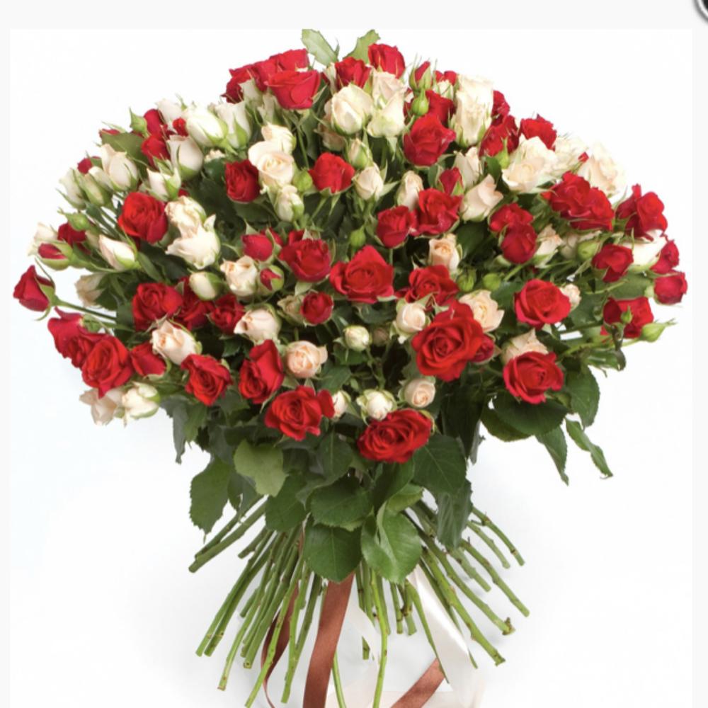 Букет из 51 красной и белой кустовой розы