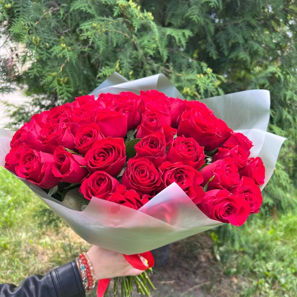 Роза красная 40 см – 51 шт.Пленка матовая – 2 шт.